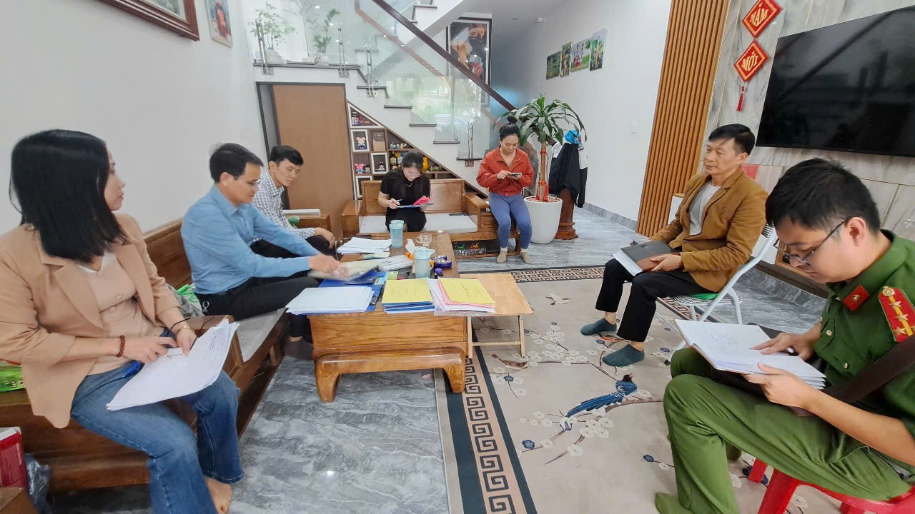 Đoàn kiểm tra xã An Trường trong buổi làm việc, rà soát hồ sơ và giấy phép hành nghề của các cơ sở y, dược tư nhân trên địa bàn