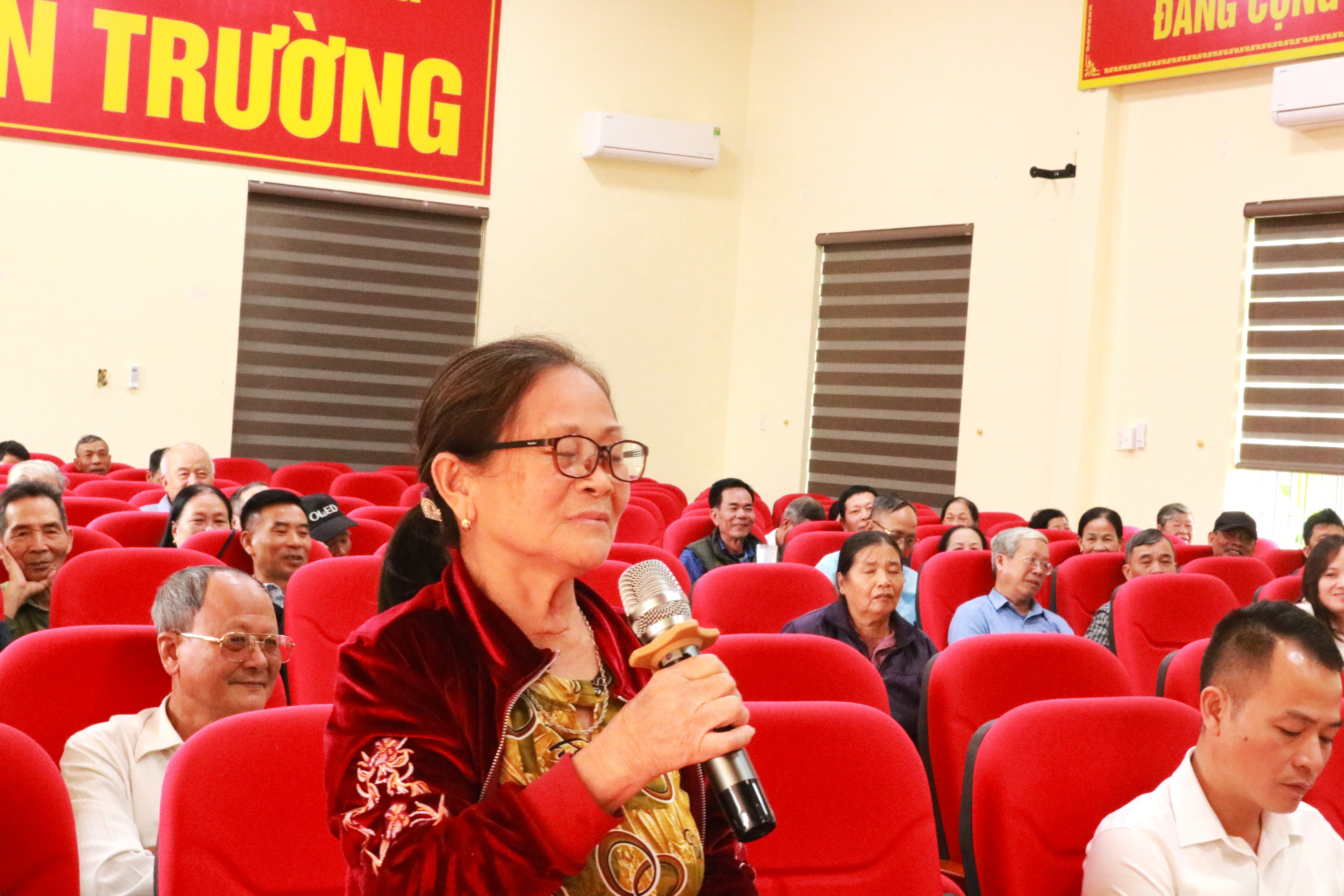 Trong không khí dân chủ, thẳng thắn và trách nhiệm, Hội nghị đã tiếp nhận 16 ý kiến phát biểu trực tiếp của đại diện cử tri các thôn, tập trung vào các nội dung được Nhân dân quan tâm như:Công tác giải phóng mặt bằng các dự án trên địa bàn;
