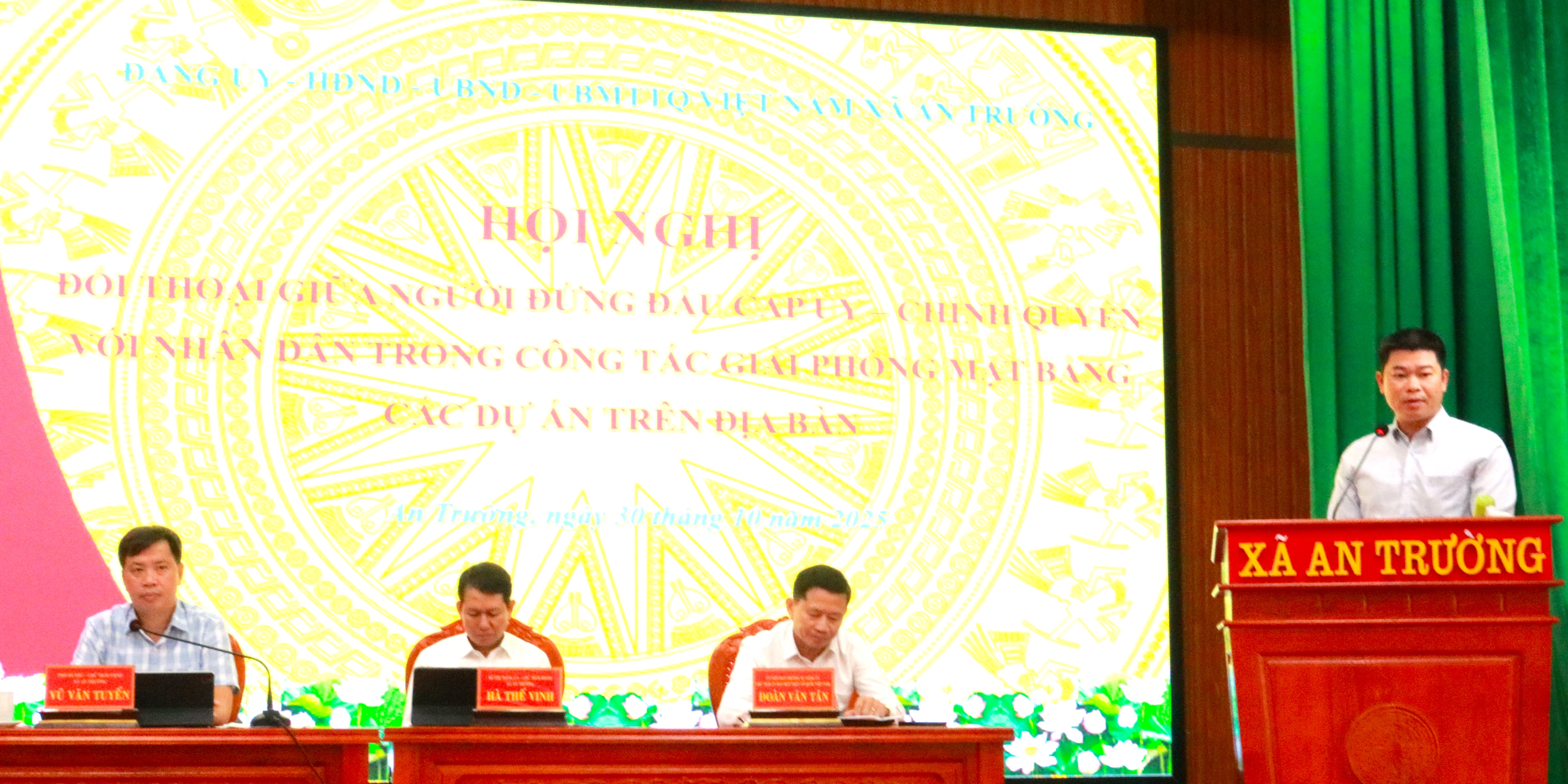 Sáng ngày 30/10, Đảng ủy, HĐND, UBND, Ủy ban MTTQ Việt Nam xã An Trường tổ chức Hội nghị đối thoại giữa người đứng đầu cấp ủy, chính quyền với Nhân dân về công tác giải phóng mặt bằng các dự án đang triển khai trên địa bàn xã.