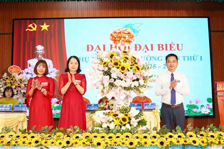 Các đồng chí lãnh đạo địa phương tặng hoa chúc mừng các đồng chí trong Ủy ban Kiểm tra Đảng ủy