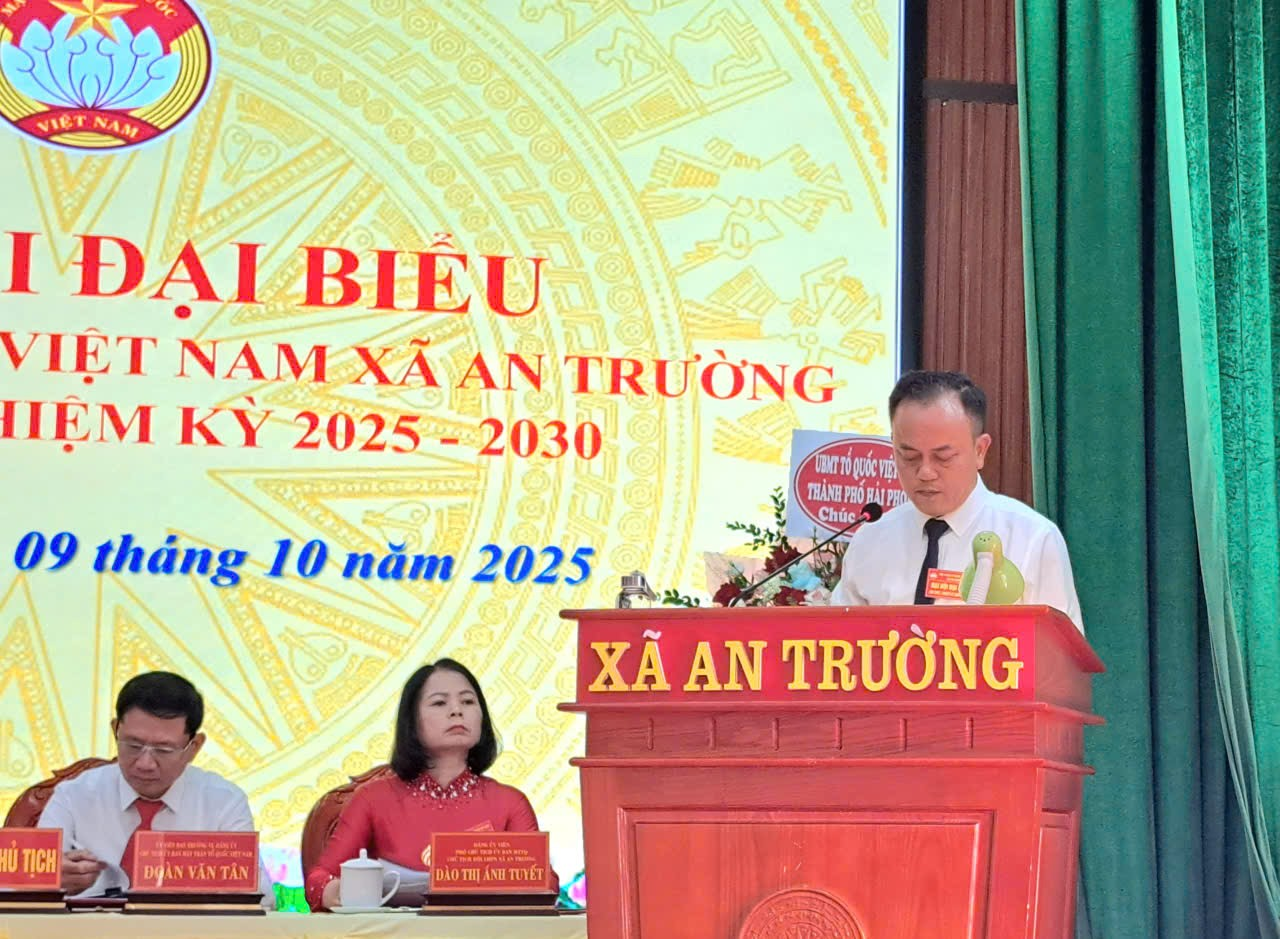 Với chủ đề “Phát huy sức mạnh đại đoàn kết toàn dân tộc, đổi mới nội dung, phương thức hoạt động, thực hành dân chủ, tăng cường đồng thuận xã hội, góp phần xây dựng xã An Trường phát triển nhanh, toàn diện, bền vững”, Đại hội đã đánh giá kết quả công tác Mặt trận nhiệm kỳ 2024–2029 và đề ra phương hướng, nhiệm vụ trọng tâm cho nhiệm kỳ 2025-2030.