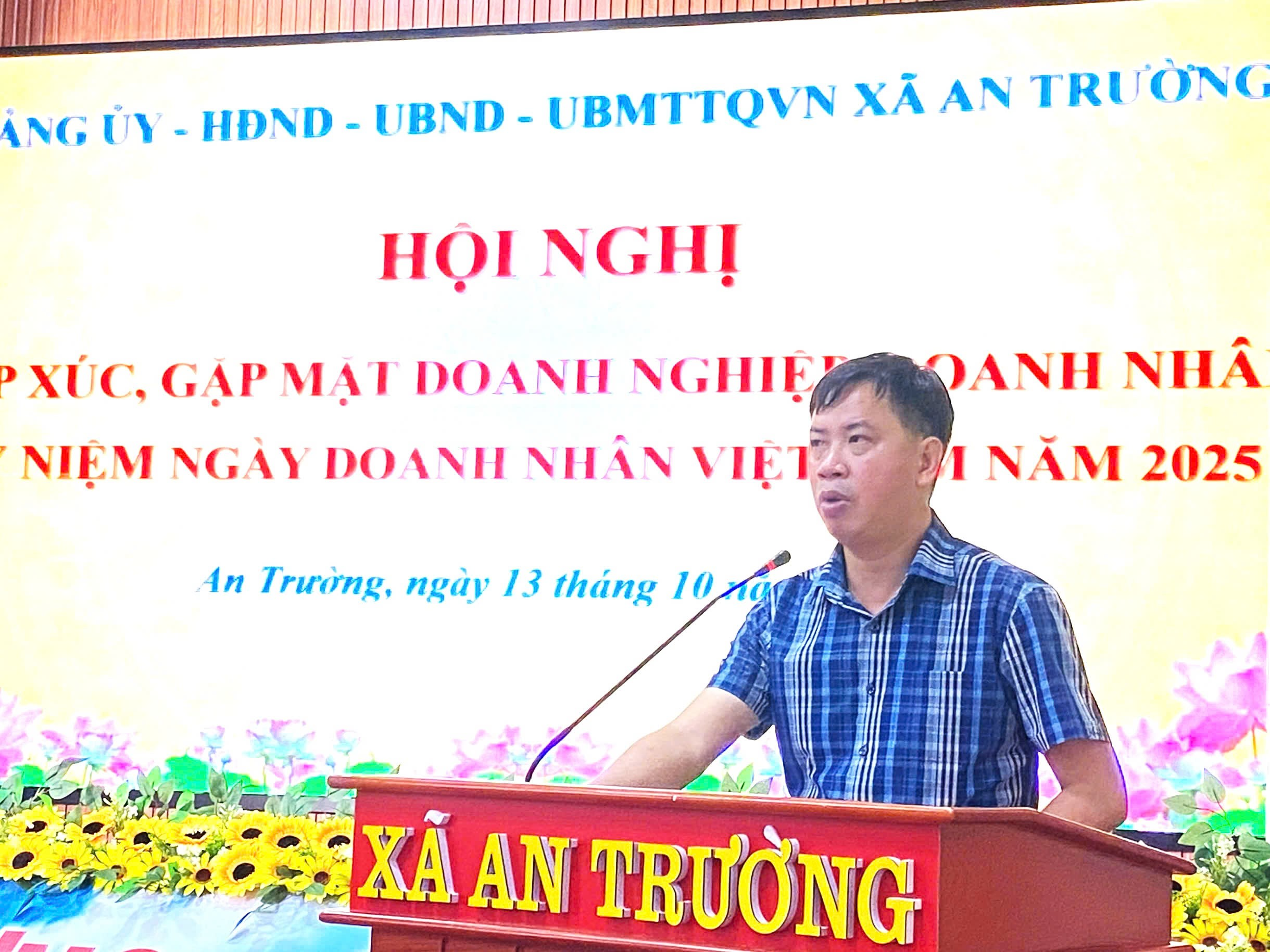 Phát biểu tại buổi gặp mặt, đồng chí Bí thư Đảng ủy xã ghi nhận, biểu dương những đóng góp tích cực của đội ngũ doanh nhân, doanh nghiệp trong quá trình phát triển kinh tế - xã hội của xã An Trường, đồng thời mong muốn các doanh nghiệp tiếp tục phát huy tinh thần sáng tạo, đoàn kết, vượt qua khó khăn, đẩy mạnh sản xuất kinh doanh, tạo thêm việc làm và thu nhập cho người lao động, góp phần cùng địa phương hoàn thành các mục tiêu phát triển. Đồng chí cũng đề nghị các doanh nhân mạnh dạn chia sẻ những khó khăn, vướng mắc và đề xuất các giải pháp thiết thực để địa phương có hướng hỗ trợ, tháo gỡ kịp thời.